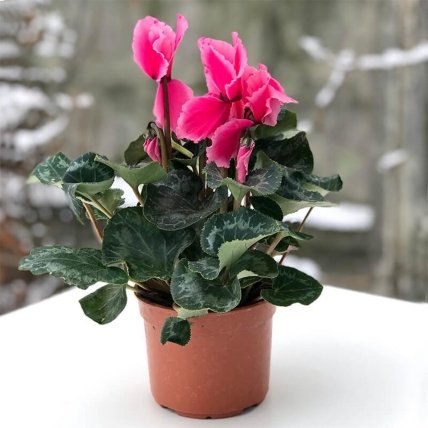 Цикламен. Достаточно привередлив в уходе. Он не любит тепло, но и холод для него – не лучшая атмосфера. Цикламен нуждается в температуре +13-17°C. Именно в таком он будет цвести. Любит много света и не переносит сквозняки.
