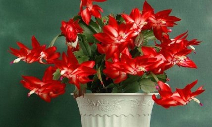 Рождественский кактус. Он цветет в конце осени – в начале зимы. Он любит много света, но прямые солнечные лучи могут навредить рождественку. Не следует заливать растение и держать у батареи.