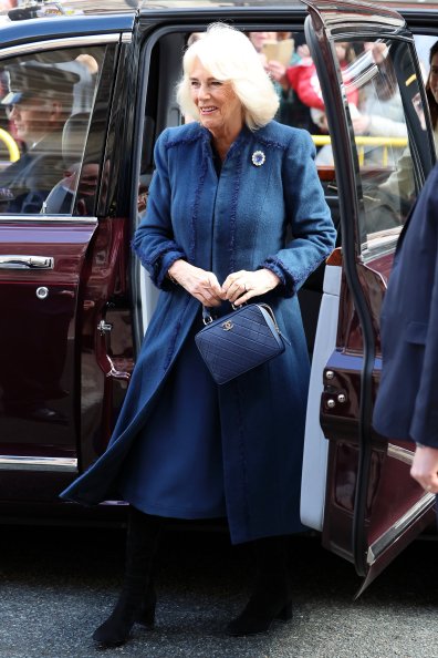 На это важное событие Камилла надела синее пальто и платье от Anna Valentine с темно-синей бахромой. Образ класса люкс королева дополнила брошью с романтической историей. Украшен аксессуар бриллиантами и сапфирами, а сама брошь — подарок королеве Виктории (1819-1901), бабушке покойной Элизаветы II, от мужа Альберта (1819-1861).