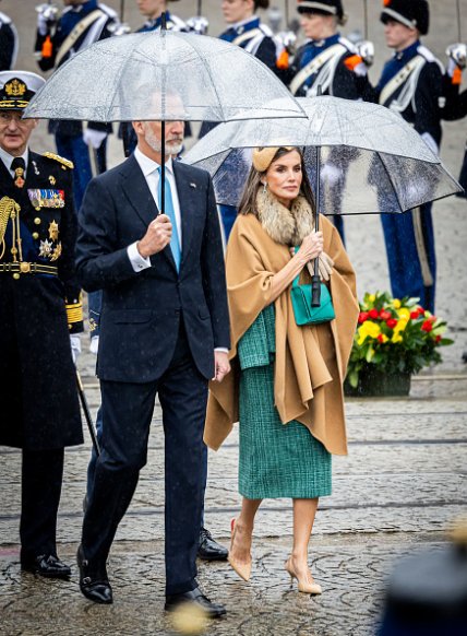 В течение двухдневного визита в Нидерланды Летиция вместе с королем Испании — Филиппом VI, посетили церемонию возложения венков на площади Дам. Для мероприятия женщина оделась очень изысканно, с королевской элегантностью.