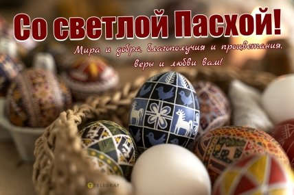 Поздравляю с Пасхой! Желаю светлой радости, искренней любви, крепкой веры, мира, покоя, процветания. Пусть душа наполнится тихим счастьем, теплыми чувствами, светлыми помыслами и любовью. Пусть этот день принесет спокойствие, умиротворение и гармонию!