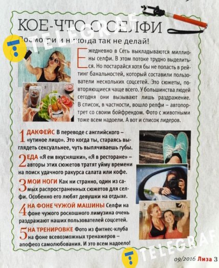 Эти полезные советы о том, какие селфи не стоит делать, мы нашли в одном из выпусков журнала "Лиза". Узнайте, какие фото лучше не делать и не выкладывать их в интернет.