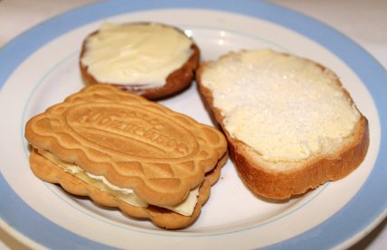 Печиво змащене маслом — такий собі аналог печива з начинкою. Адже одне печиво мазали маслом і зверху клали інше — готово.