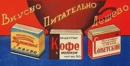 Кава у брикетах. У СРСР справжня кава була у дефіциті та й коштувала чимало, але на полицях магазинів можна було знайти не лише дивні кавові напої із жолудів, а й каву та какао у брикетах. Називалось це "молочним концентратом", який коштував 10 копійок. Та діти його не заливали окропом, як годиться, щоб отримати напій, а гризли сухим.